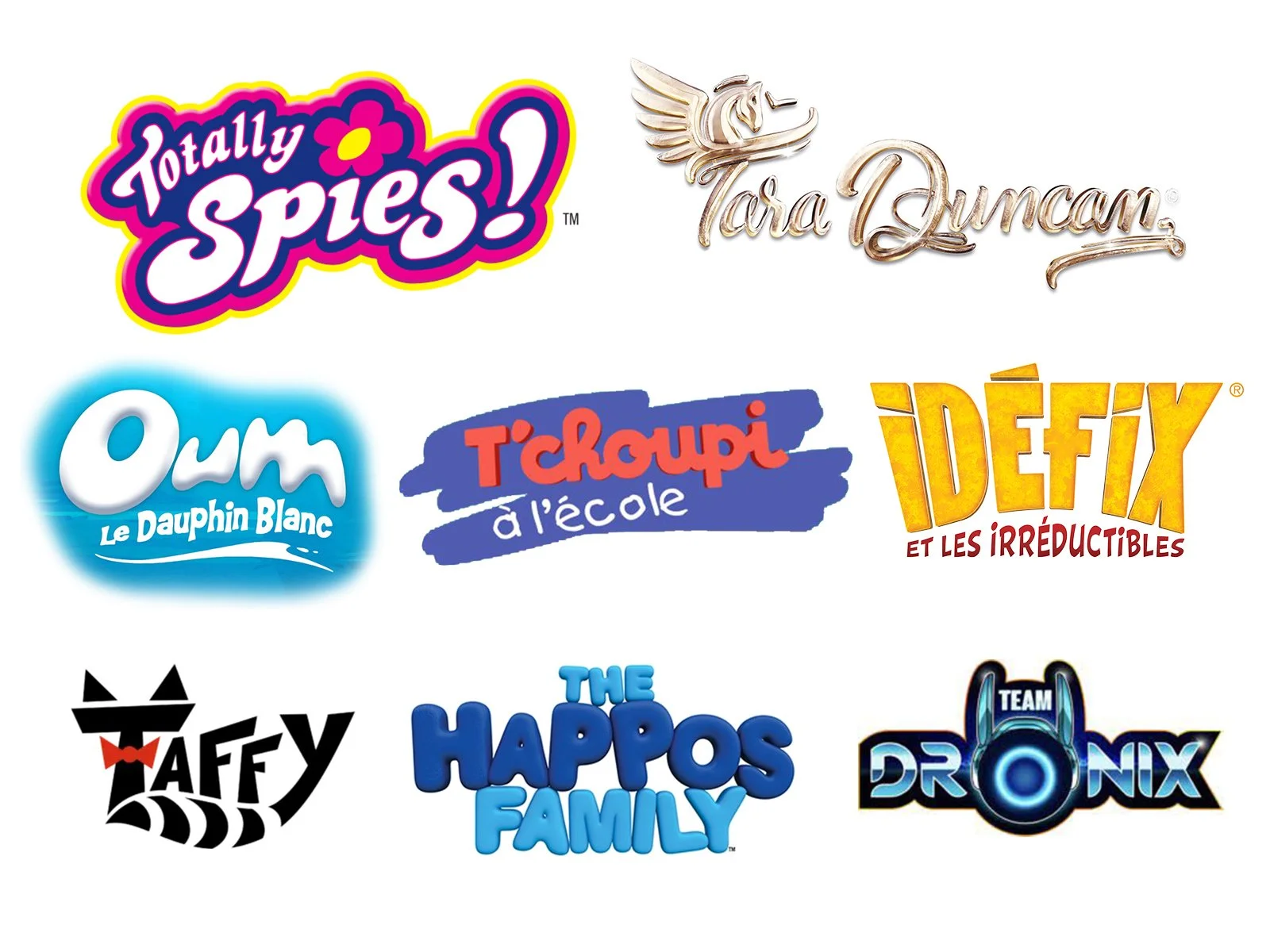 Séries : Totally Spies!, Oum le Dauphin, T’choupi, Tara Duncan, Idéfix, Taffy, Happos Family, Team Dronix, Gustave, Monster Shaker, Il était une fois les Objets…
